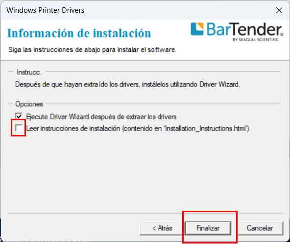 Desactiva la opción “leer instrucciones” y selecciona “Finalizar”: