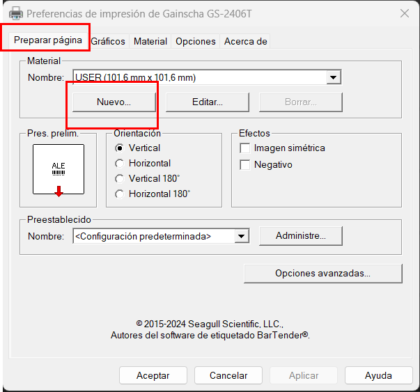 Nos vamos a la pestaña “Preparar página” y luego seleccionamos “nuevo material”: